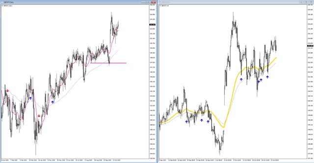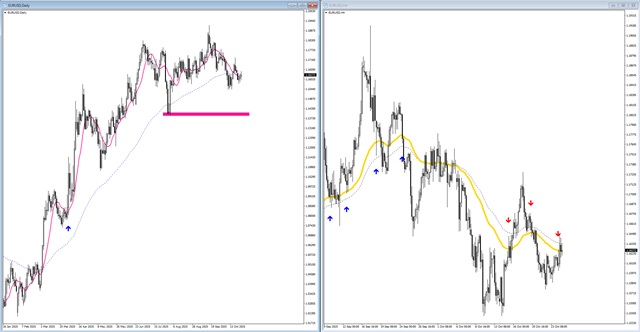 チャートは「日足(10SMA、75EMA)と4時間足:ライトニング手法」のセットアップです。